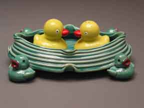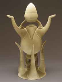 | I grew up in St. Louis, and went to Ladue Horton Watkins High School. There I became hooked on ceramics. This love sent me to Alfred University where I received a Bachelor of Fine Arts, as well as a New York State Teaching Degree. Recently I have moved back to St. Louis and make my work out of a studio in Webster. I spend my summers in Connecticut teaching ceramics at Bucks Rock Camp. Currently I am a substitute teacher for several districts, and teach a ceramic night class at Ladue Horton Watkins High School. My sculptures tend to be either figurative, or architectural, and are inspired from the arts of many different cultures. I found my way into ceramics through learning traditional functional ceramic processes. Currently I try and make my functional objects reference to other things, like my sculptures do. In my functional work I have been working lately with rubber duck’s, chess pieces, hammers, and diamond plate. My process involves hand building thrown, and slips cast elements together. Currently I am working on a series of sculptures based on skeletons of horned animals.